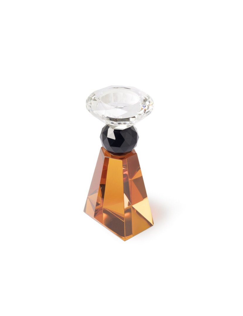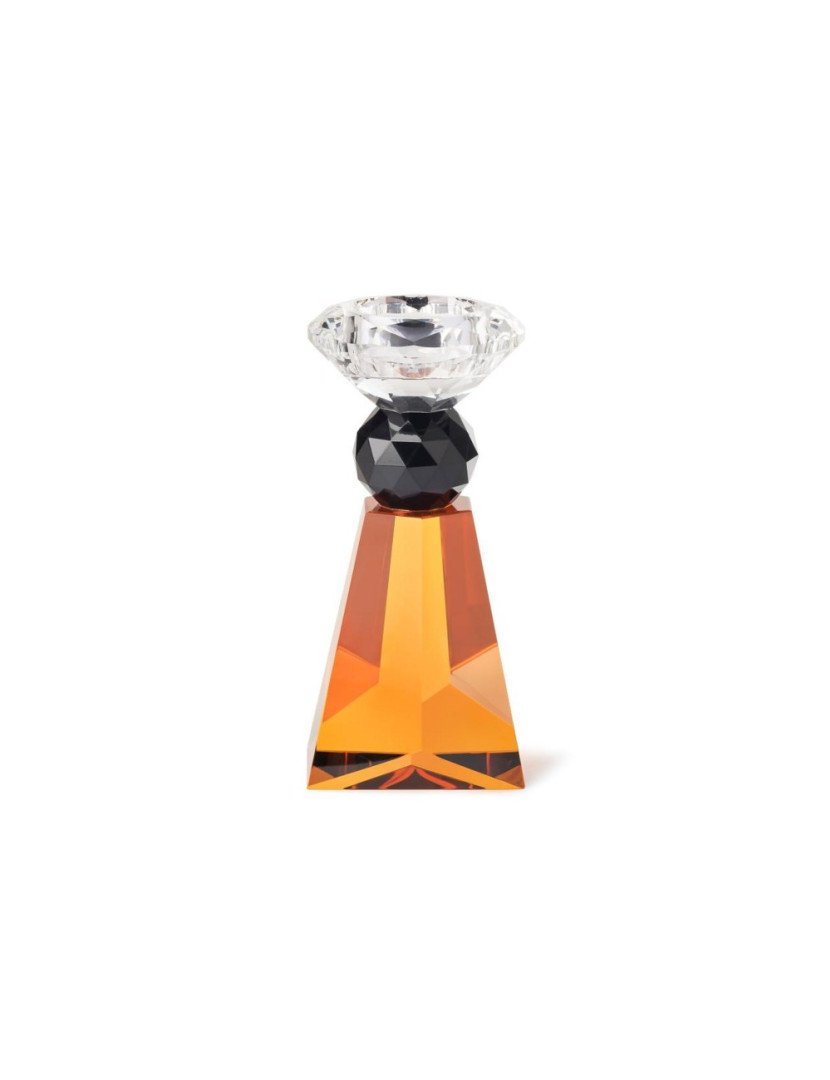 Suport de lumânare din sticlă optică colorată.