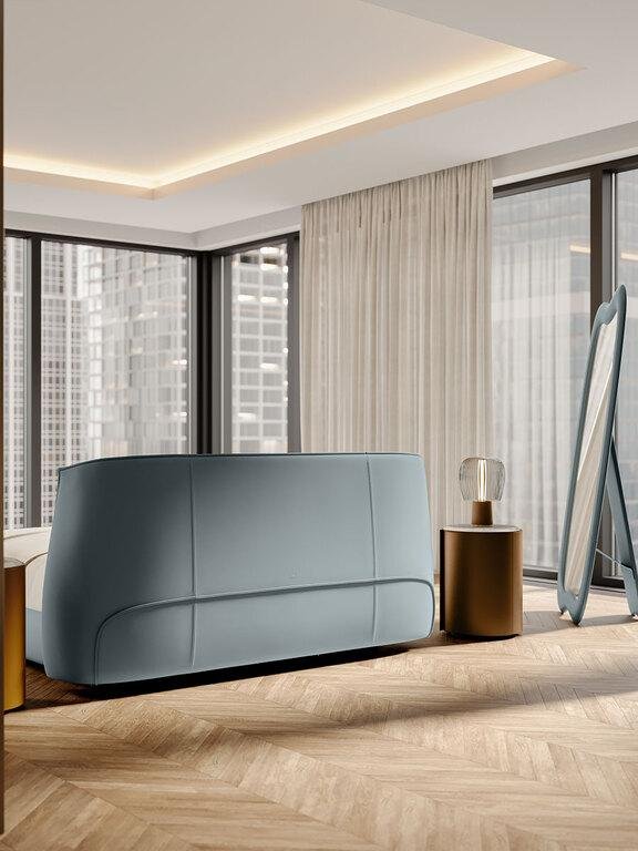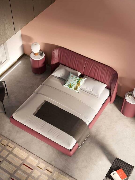 Patul Archibald este disponibil într-o gamă de dimensiuni, cu picioare de diferite înălțimi, vopsite în negru sau tapitate în piele. Patul este acoperit complet cu piele Pelle Frau®, iar spatele este disponibil și într-o variantă din pânză Jacquard Poltrona Frau, utilă pentru poziționarea pe perete. Patul este conceput pentru a se potrivi cu diferite tipuri de suporturi pentru saltea (fixe, manuale sau electrice) și saltele de diferite dimensiuni.
