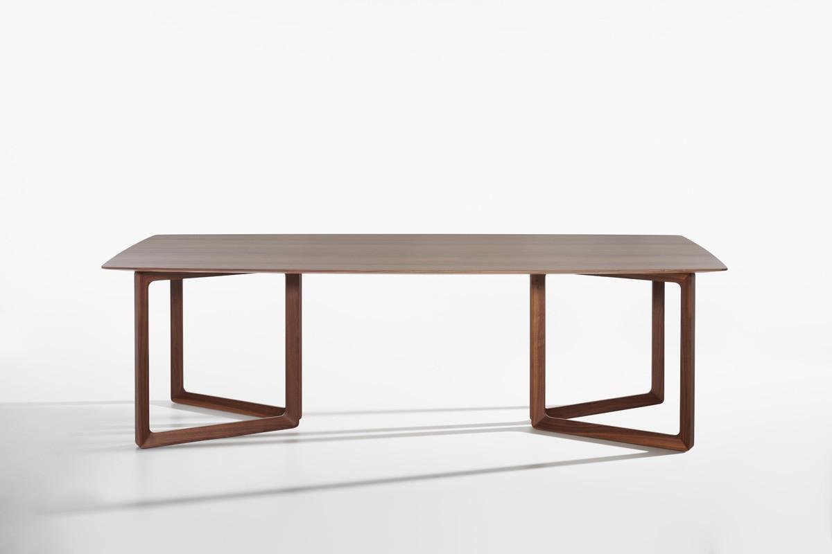 Design Bernhardt & Vella Masa Opus se caracterizează printr-un design deosebit al bazei, care constă dintr-un singur element repetat și poziționat în funcție de dimensiunea blatului. Baza este disponibilă în lemn masiv de frasin sau nuc Canaletto, iar blatul, în varianta de tip baril, este disponibil și în lemn de frasin sau nuc Canaletto, pentru ambele dimensiuni ale blatului. Blatul de 250 cm este, de asemenea, disponibil în marmura din colecție. Cu un design geometric și liniar, Opus este protagonistul unei zone de dining discrete, dar și al unei săli de mese importante.