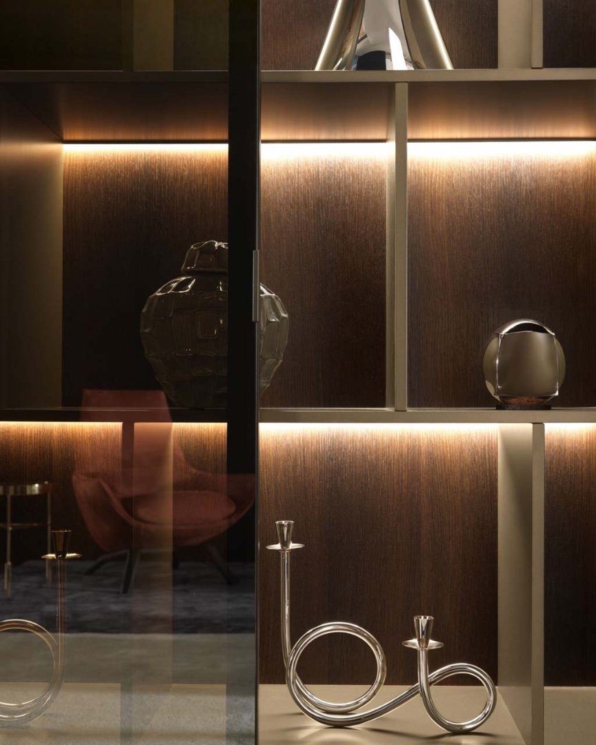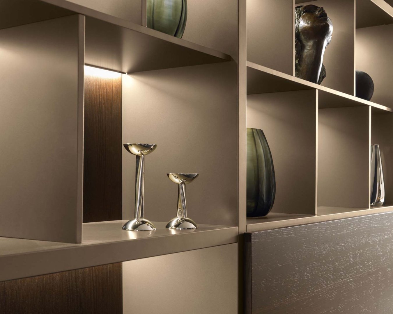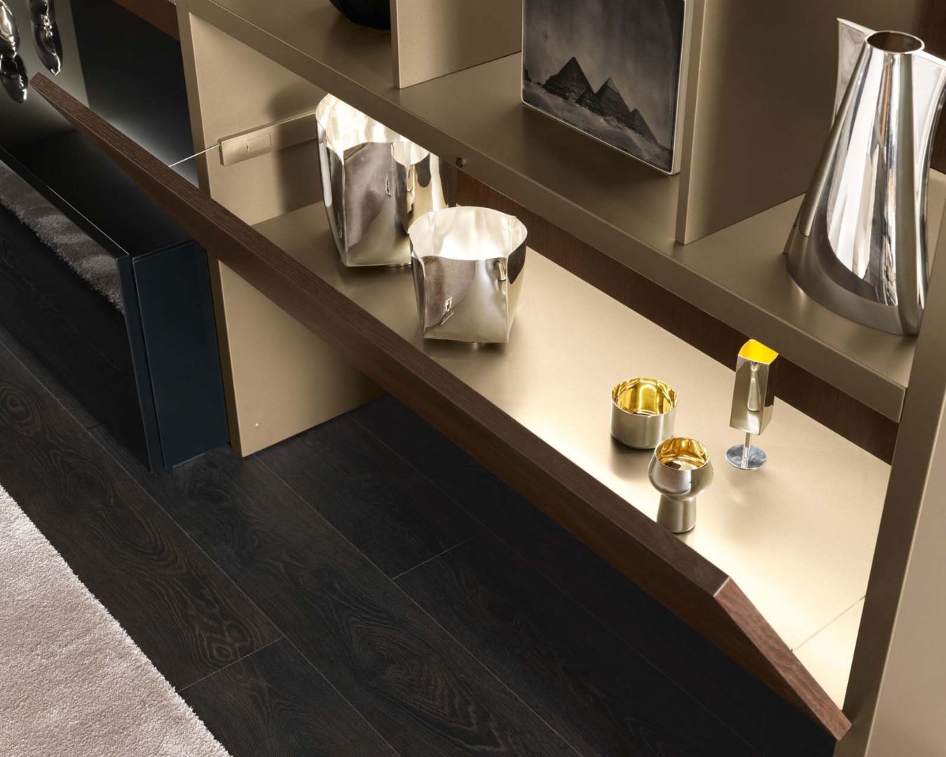 Crossing este un sistem modular versatil de panouri pentru a crea rafturi montate pe perete. Complet ajustabil pe trei axe dimensionale, poate susține până la 400 kg. Programul oferă o serie de module de diferite tipuri și dimensiuni, dulapuri suspendate cu uși pliante, batante sau glisante și sertare de diverse dimensiuni. Crossing este disponibil în versiunea Fusion (cu părți din placaj sau panouri de lemn vopsit) sau în versiunea Listellare (panouri de poplar furniruite sau laminate). Compartimentele includ un sistem special de iluminat cu LED-uri. Finisaje: lac mat, culori lucioase, lemn natural, furnir/placaj.