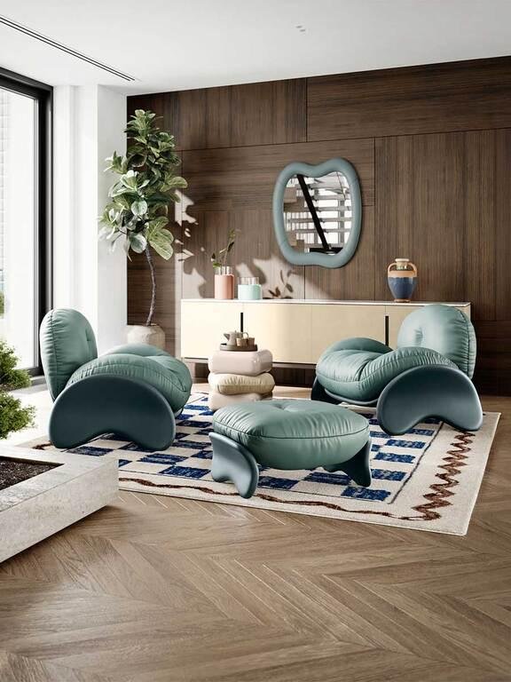 Scaunul Squash, cu contururi generoase și confortabile, este realizat cu un cadru rigid tip trestie din polimex®, care susține pernele mari și moi, tapitate cu piele Pelle Frau® sau o combinație de piele-țesătură, cu husă detașabilă. Cadrul și picioarele sunt ușor umplute, oferindu-le o senzație plăcută la atingere. Picioarele bazei sunt tapitate cu piele. Pernele de șezut și brațele sunt umplute cu vată de poliester și spumă poliuretanică cu densitate diferențiată pentru un confort mai mare. Baza șezutului este din placaj de mesteacăn. Combinările de culori recomandate de designer pentru scaunul Squash sunt Crem, Salvie, Albastru și Maro.