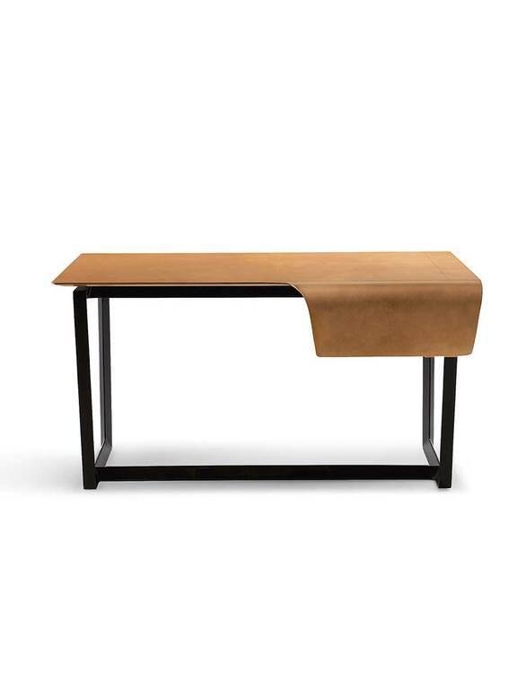 Structura biroului Fred este realizată din frasin masiv, cu nuanțe de wenge sau moka și secțiune triunghiulară, care evidențiază ușurința acestuia. Același material și finisaje sunt folosite și pentru sertarul care completează biroul, montat pe șine metalice cu mecanism de închidere lentă. Suprafața este acoperită cu o singură bucată de piele Cuoio Saddle Extra de 4 mm grosime, fără diviziuni sau cusături. Marginea brută a pielei este finisată cu ceară protectoare și vopsea. Accesoriile metalice au un tratament galvanic de culoare gri gunmetal și un strat protector de lac.