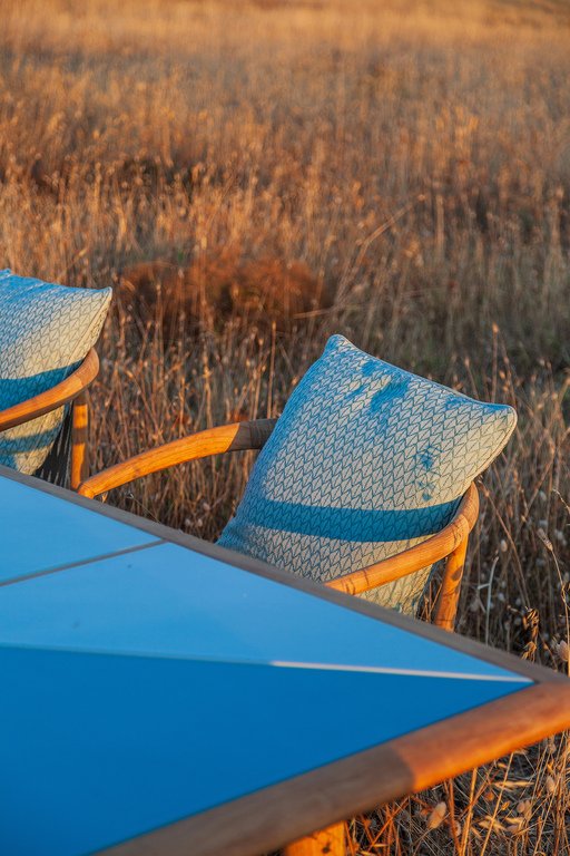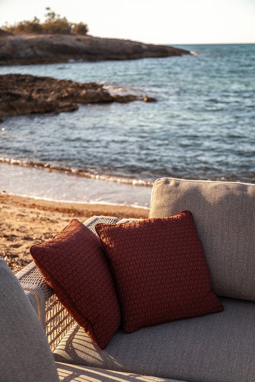 Perne decorative de exterior: compatibile cu toate tipurile de șezut de exterior; 3 dimensiuni; huse detașabile în culori vii; realizate din fire de acrilic/polipropilenă; disponibile în 4 game cromatice inspirate de Marea Mediterană.