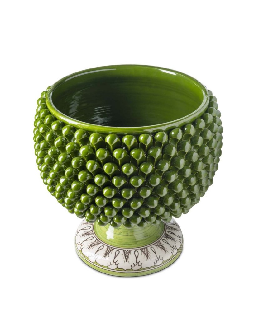 Italian-made traditional vase inspired by pinecone pattern.